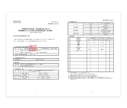 定量分析「JIS A 1481-3」「JIS A 1481-5」「速報+報告書」をご納品する流れで承っております。